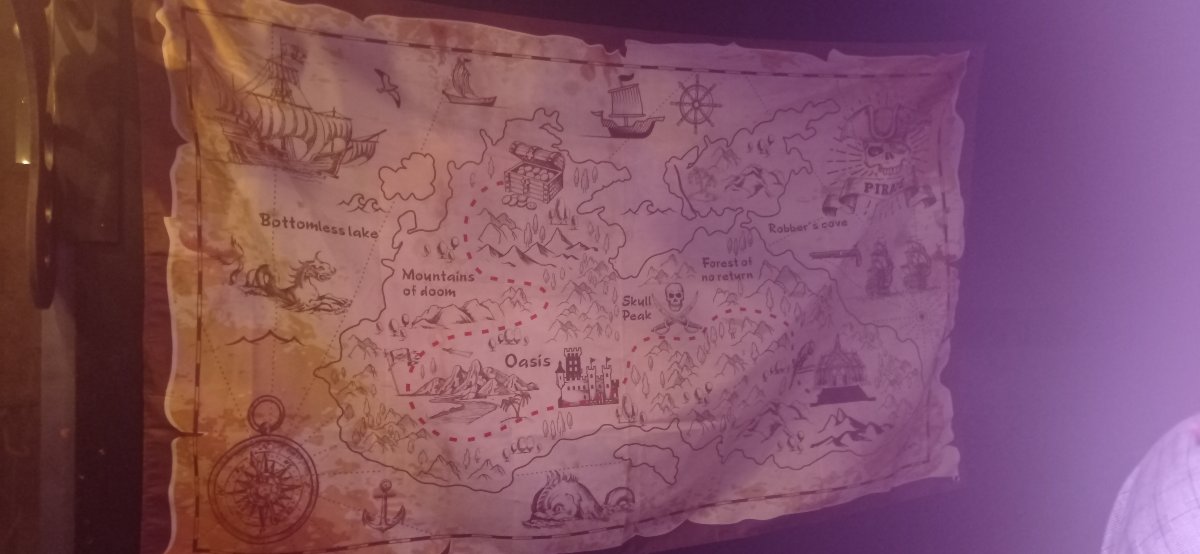 Un décor de pirates, des bouteilles de rhum, des têtes de mort, des cartes au trésors, des pièces d’or de la fumée et des cerveaux en ébullitions .